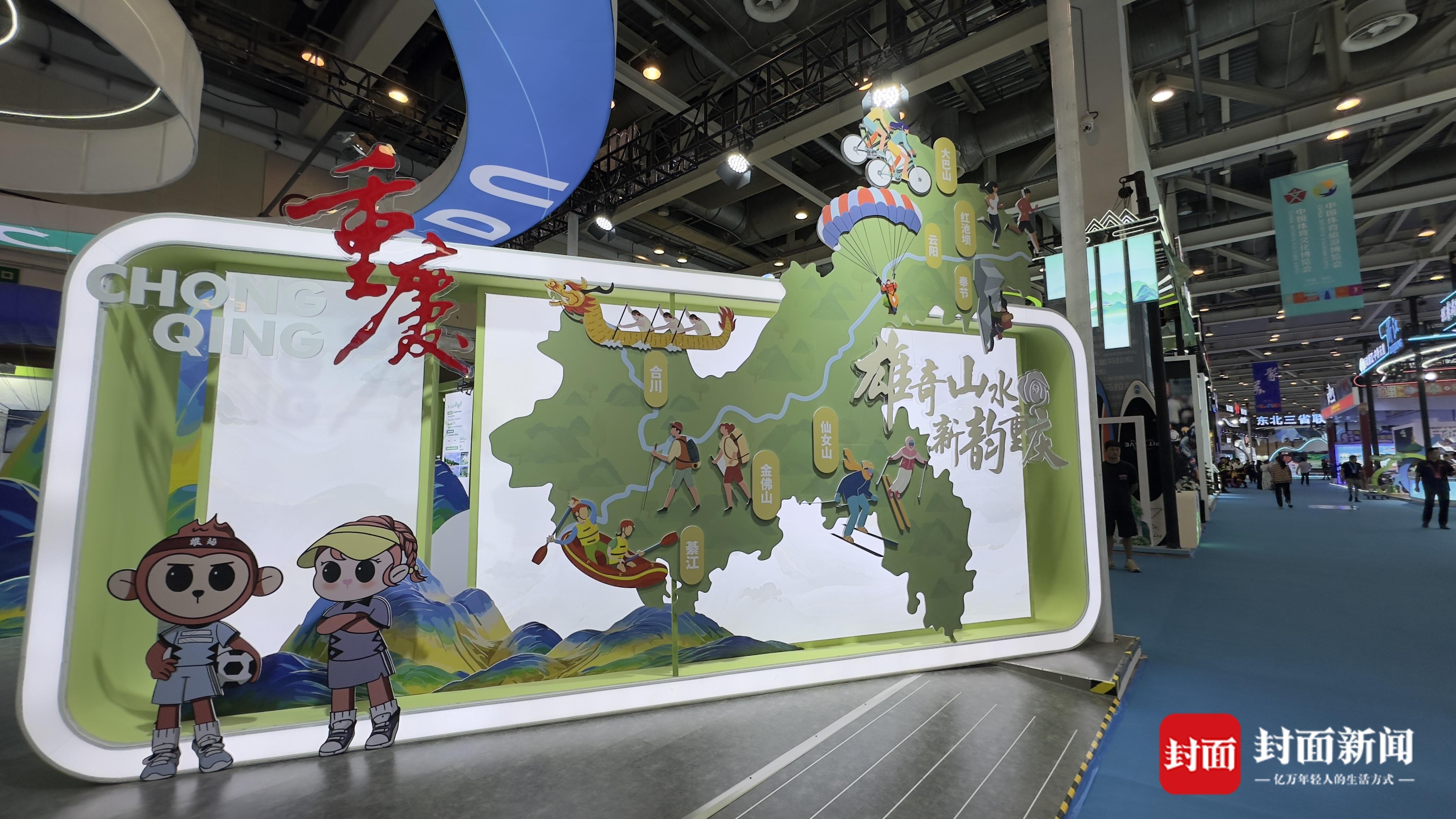四川、重庆、成都以“巴山蜀水 川渝蓉耀”为主题,设置川渝蓉联合展区,以《山水同辉·悦动之旅》《文脉同承·匠心之韵》《双圈同擎·活力之芯》三个板块,集成展示川渝体育游精品线路、体育非遗项目、特色户外运动及优势体育产业。