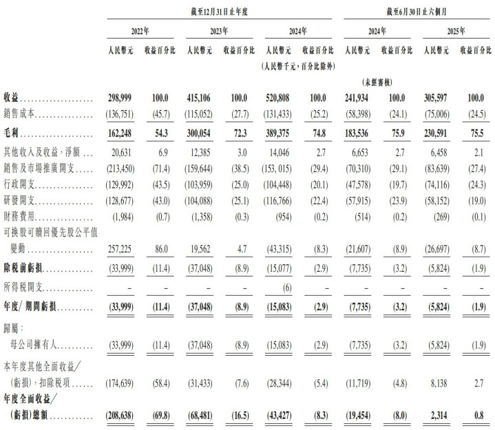 刨开以股份为基础的薪酬开支以及可换股可赎回优先股公平值变动影响,2024年小鹅通调整净利润扭亏为6631.0万元,2025年上半年5883.3万元,为去年全年的88.72%。