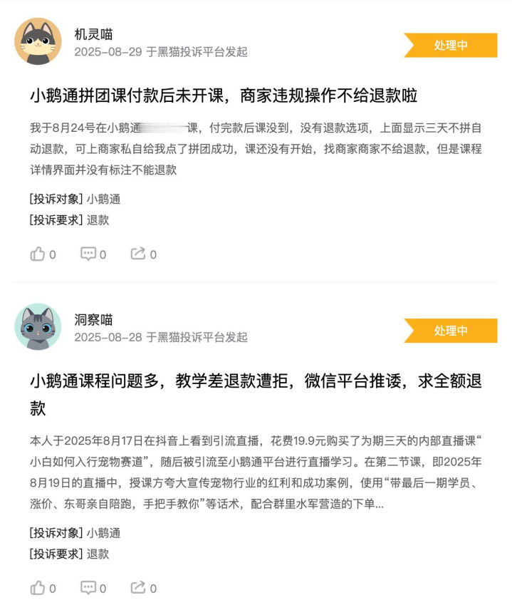 在黑猫平台上,关于小鹅通的投诉累积达3237条,投诉主要涉及服务质量、退费问题以及产品功能不完善等方面,这些投诉也可能成为其IPO路上的一个障碍。