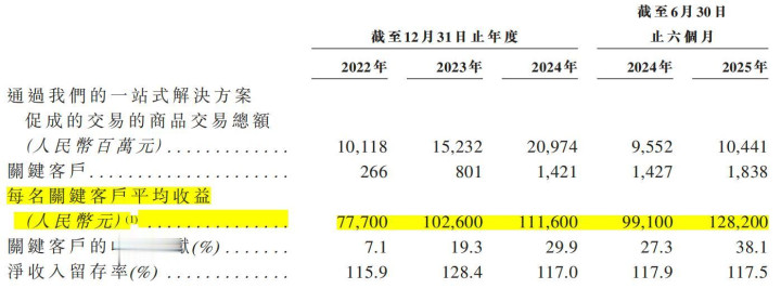 截至2025年6月30日,小鹅通拥有1838名关键客户,今年上半年,来自每名关键客户平均收益12.82万元,收入贡献38.1%。