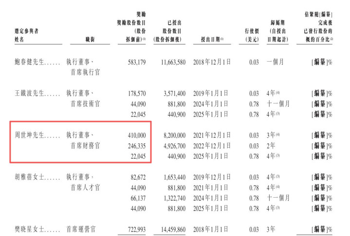 而鲍春健也给了周世坤足够的激励。截止递表前,小鹅通向106名合资格参与人士授出约605万股份(已授出但尚未行使),其中,周世坤分别在2021年、2022年、2025年三次合计获得约67.83万股份,高于鲍春健,仅次于首席运营官樊晓星。